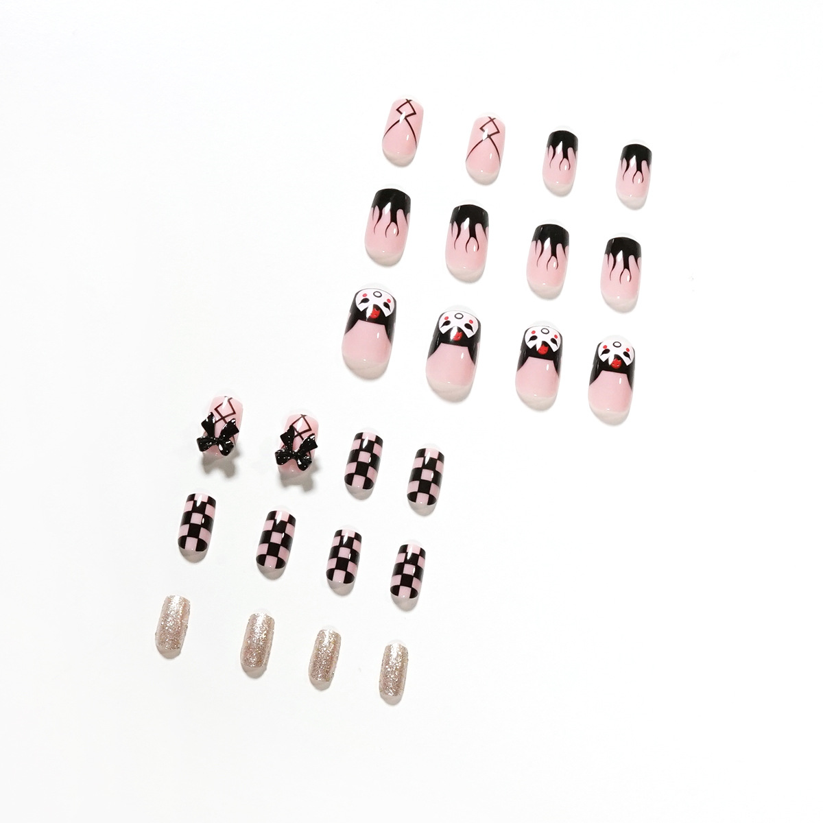黑蝴蝶结棋盘火焰穿戴美甲成品假指甲美甲贴片指甲片可卸甲片厂销 수량