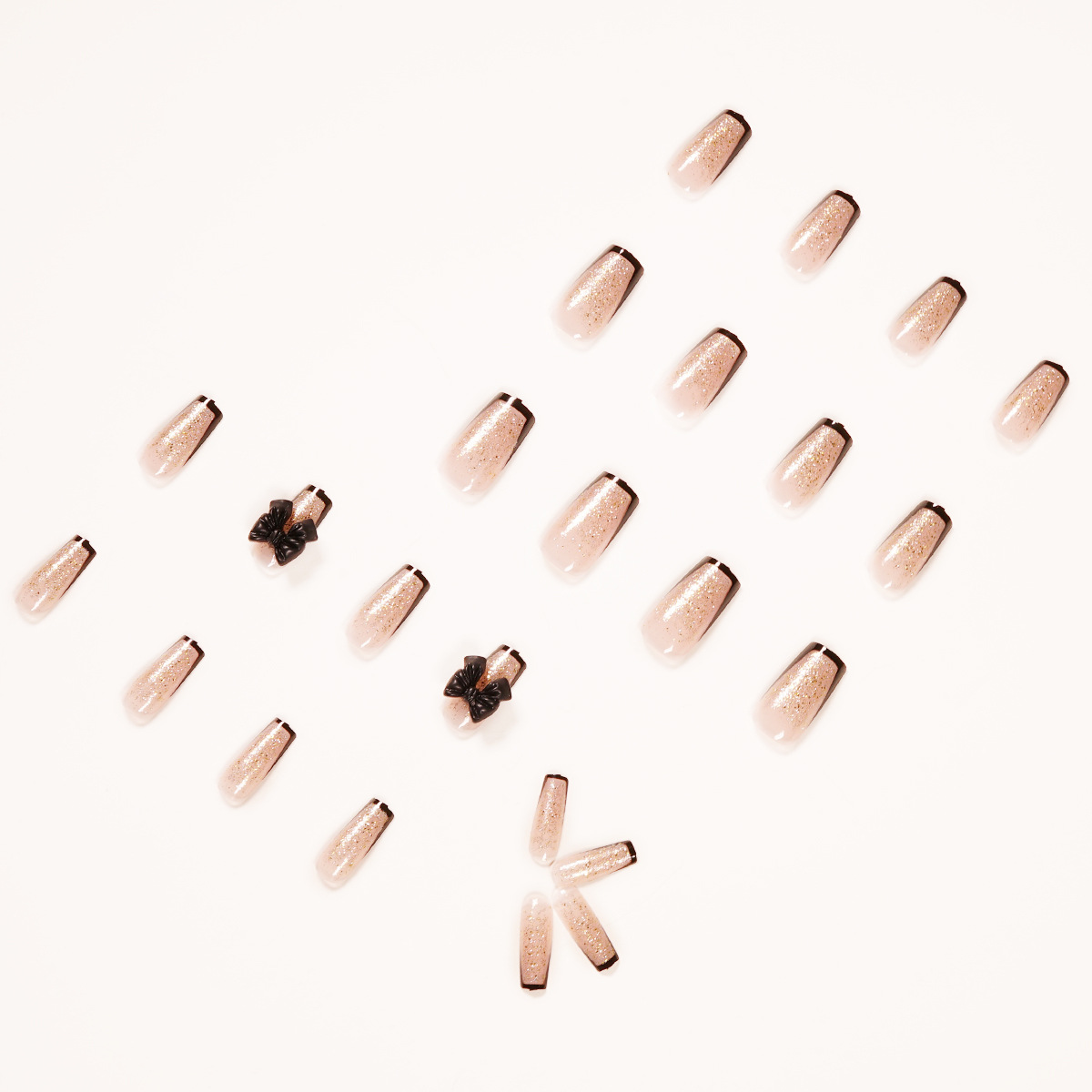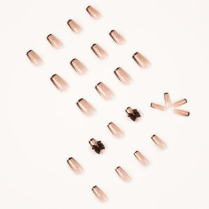 黑边法式美甲贴金粉蝴蝶结假指甲贴可拆卸穿戴美甲指甲贴厂家直销 수량