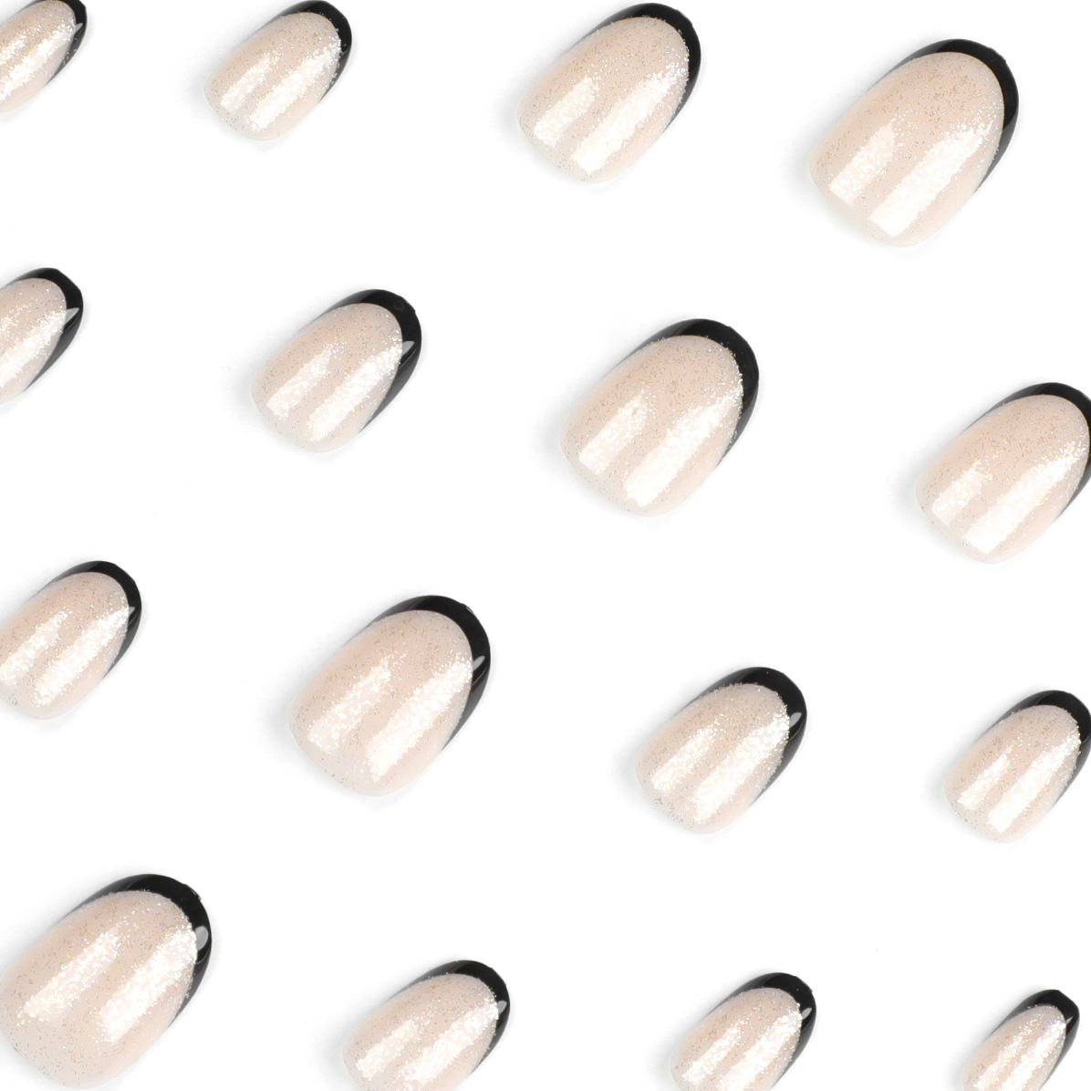 穿戴甲甲片黑色法式闪粉短款穿戴甲美甲片可拆卸成品甲片批发nail 수량