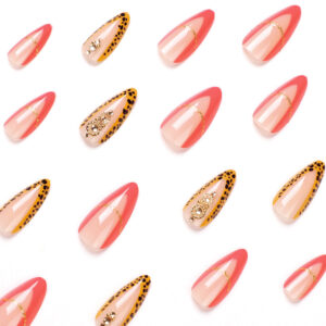 穿戴甲甲片批发豹纹橙红鸳鸯法式指甲片批发穿戴甲可拆卸美甲批发 수량
