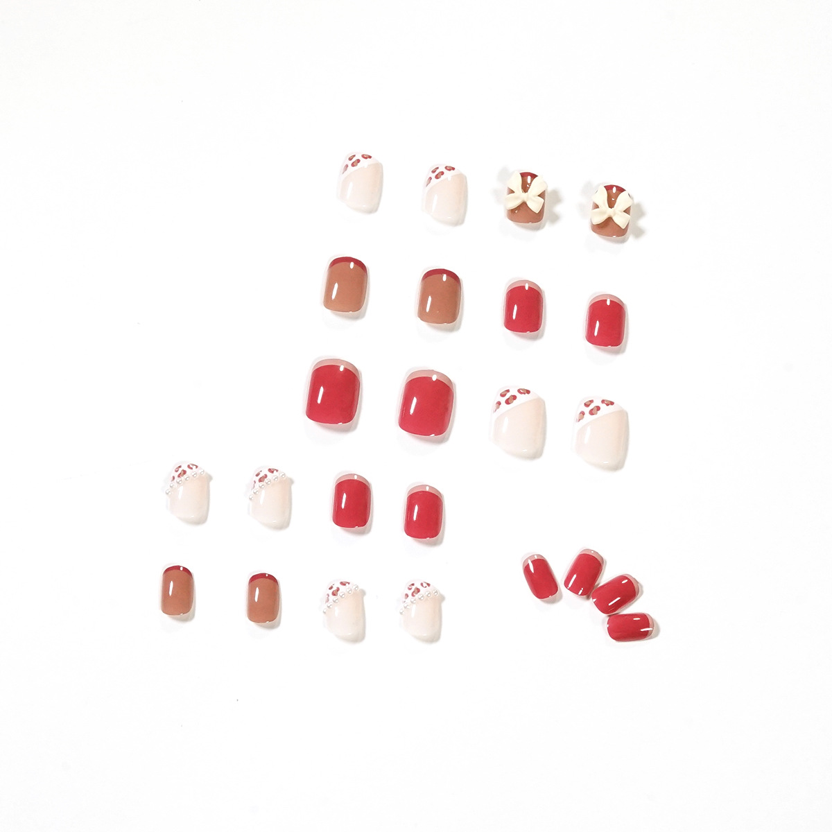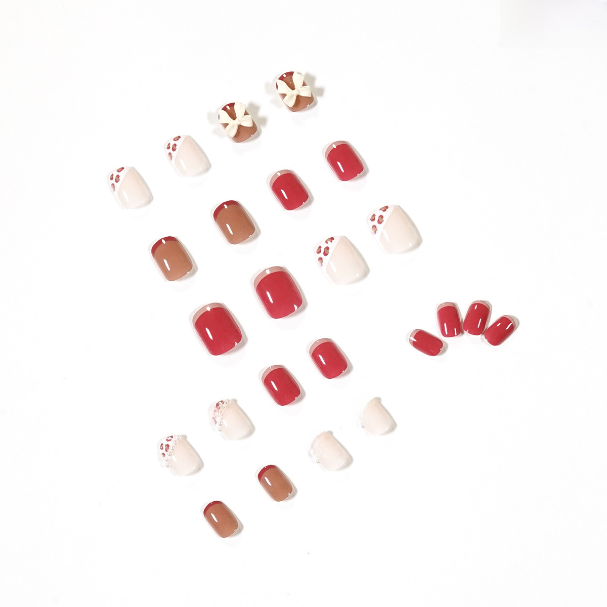 奶油粉豹纹珍珠美甲贴片指甲贴片可爱穿戴美甲成品假指甲可拆甲片 수량