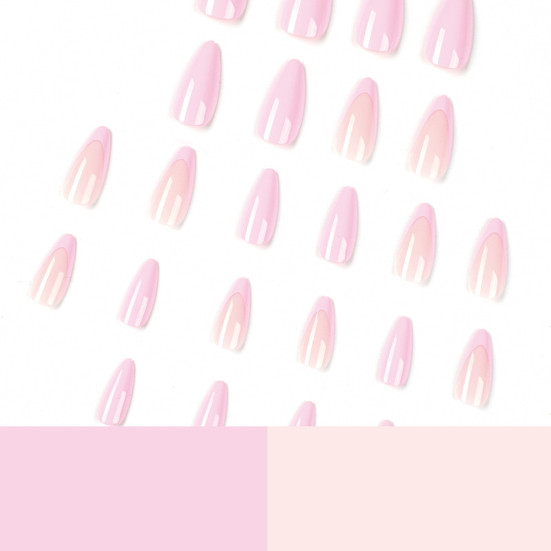 / 甲片穿戴甲可拆卸简约法式粉边纯色穿戴式美甲假指甲指甲贴片批发