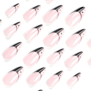 피치 핑크 프렌치 자두 드릴 드롭스 롱 발레 웨어러블 네일 아트 완성 가짜 손톱 네일 패치 네일 패치