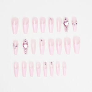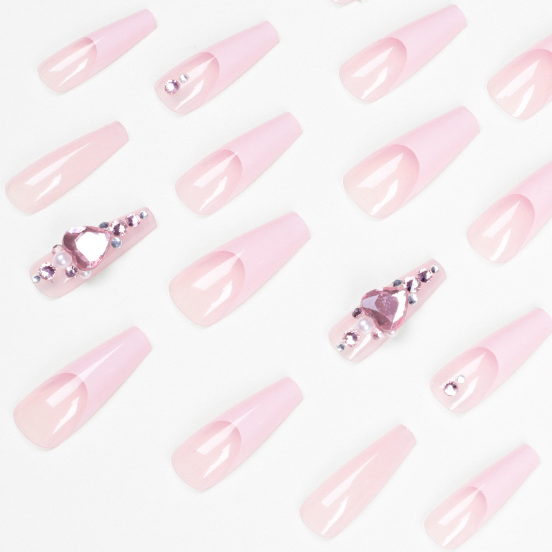 / 法式长芭蕾粉爱心堆钻穿戴甲甲片批发美甲假指甲美甲贴片nails