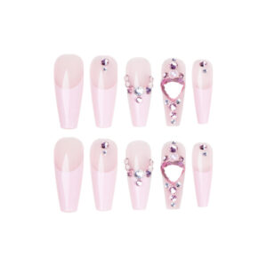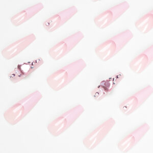 法式长芭蕾粉爱心堆钻穿戴甲甲片批发美甲假指甲美甲贴片nails