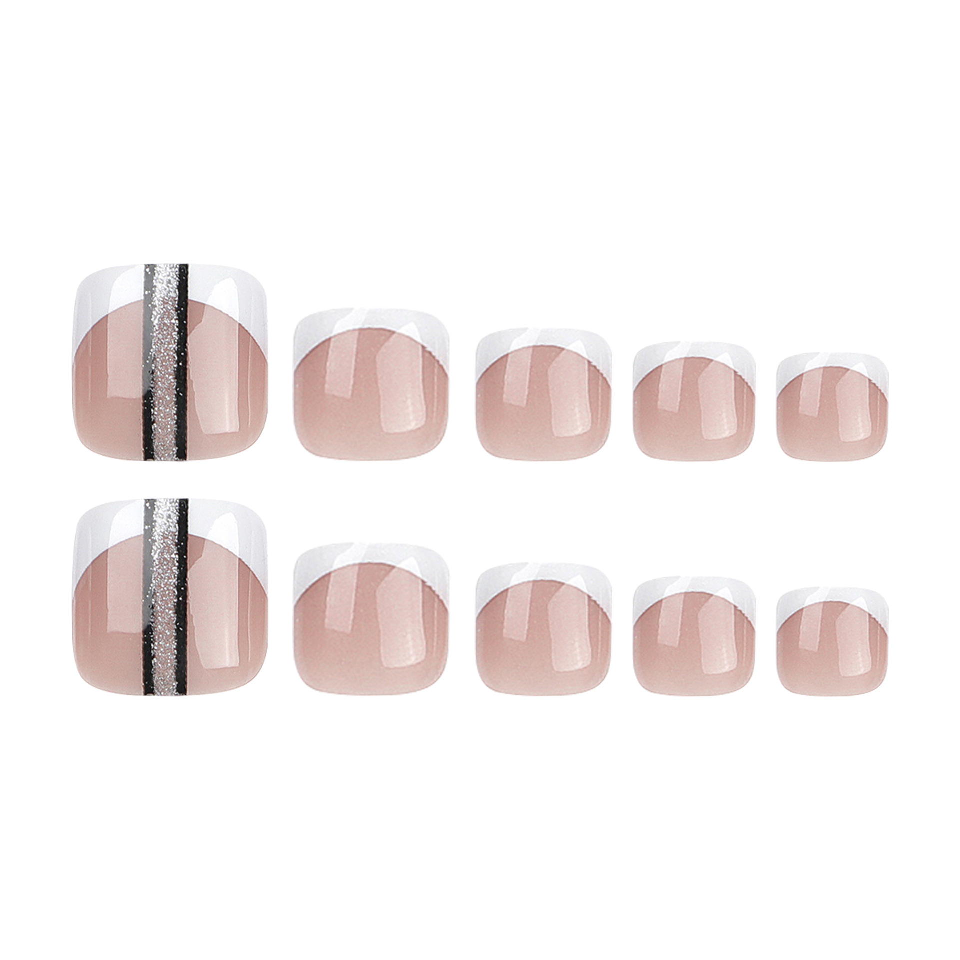 法式银色闪粉美甲黑色条纹拼接脚趾甲片短款脚款穿戴甲甲片批发 수량