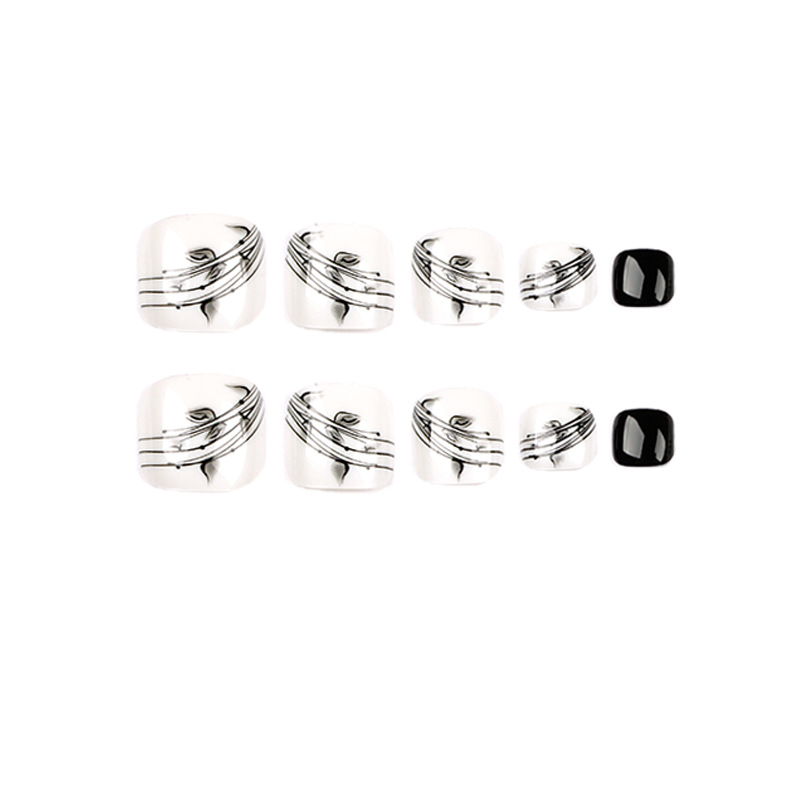 水墨叶子黑白脚甲穿戴式美甲穿戴美甲批发美甲片可拆卸美甲甲片 수량