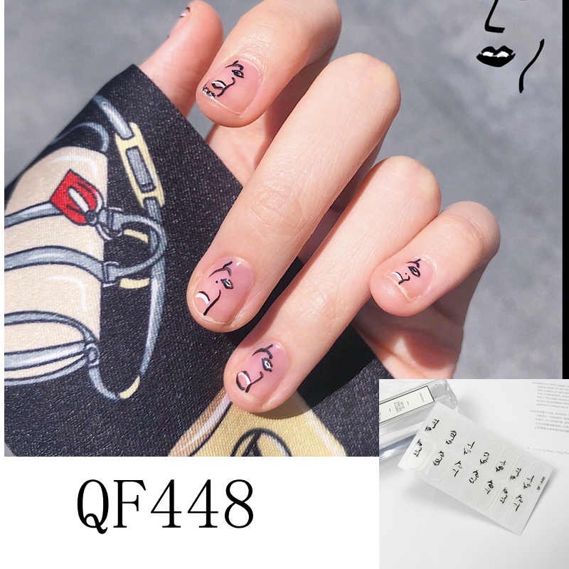 인스 다크 시리즈 기하학적 인 성격 인간의 얼굴 네일 스티커 간단한 장미 네일 스티커 방수 찢을 수있는 네일 스티커