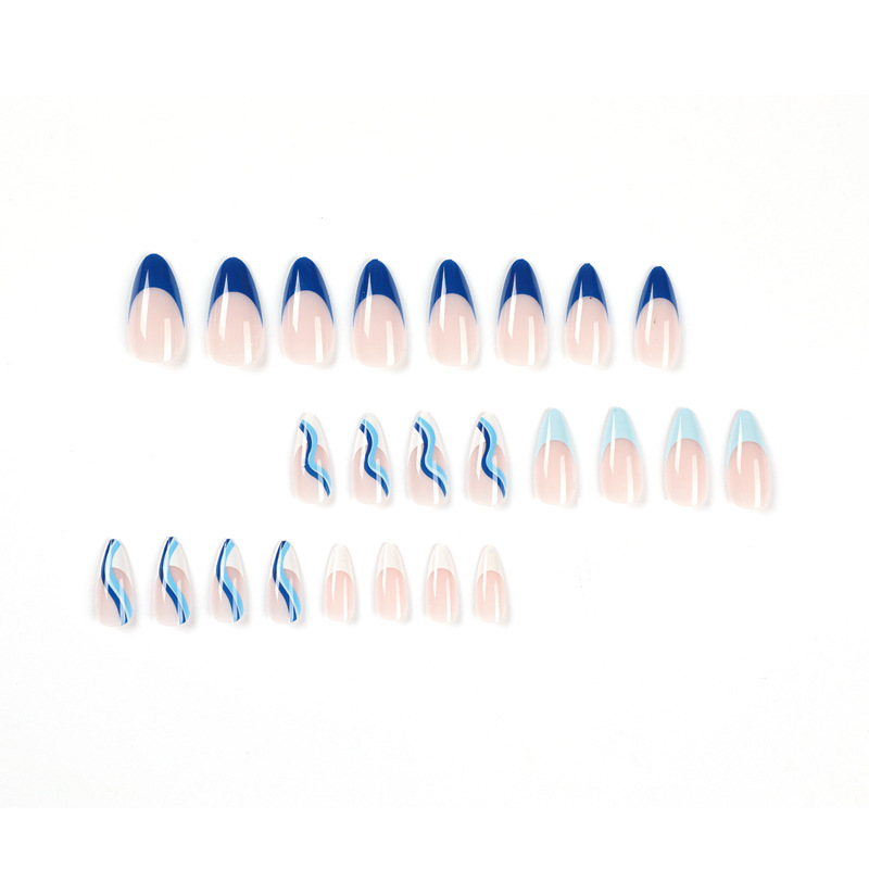 美甲贴片蓝白撞色法式波浪美甲穿戴甲批发中长款可拆卸美甲 nails 수량
