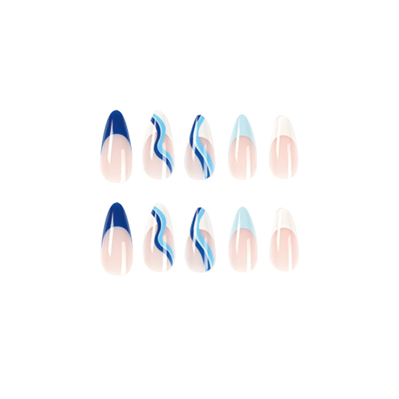 / 美甲贴片蓝白撞色法式波浪美甲穿戴甲批发中长款可拆卸美甲 nails