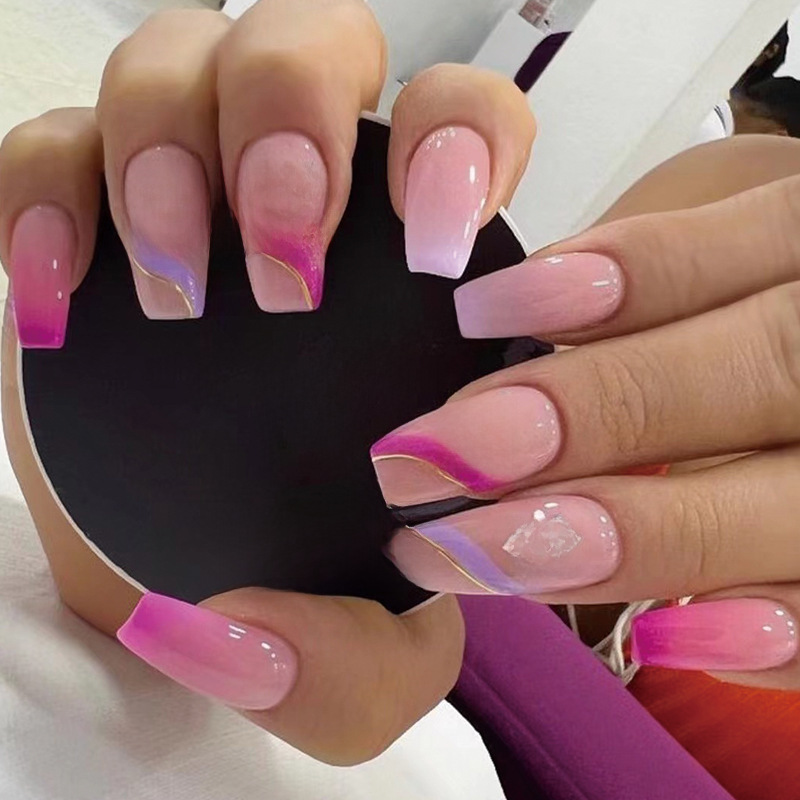 웨어러블 매니큐어 누드 파우더 프렌치 라인 석 네일 패치 도매 네일 조각 완성 도매 네일 조각 완성 손톱