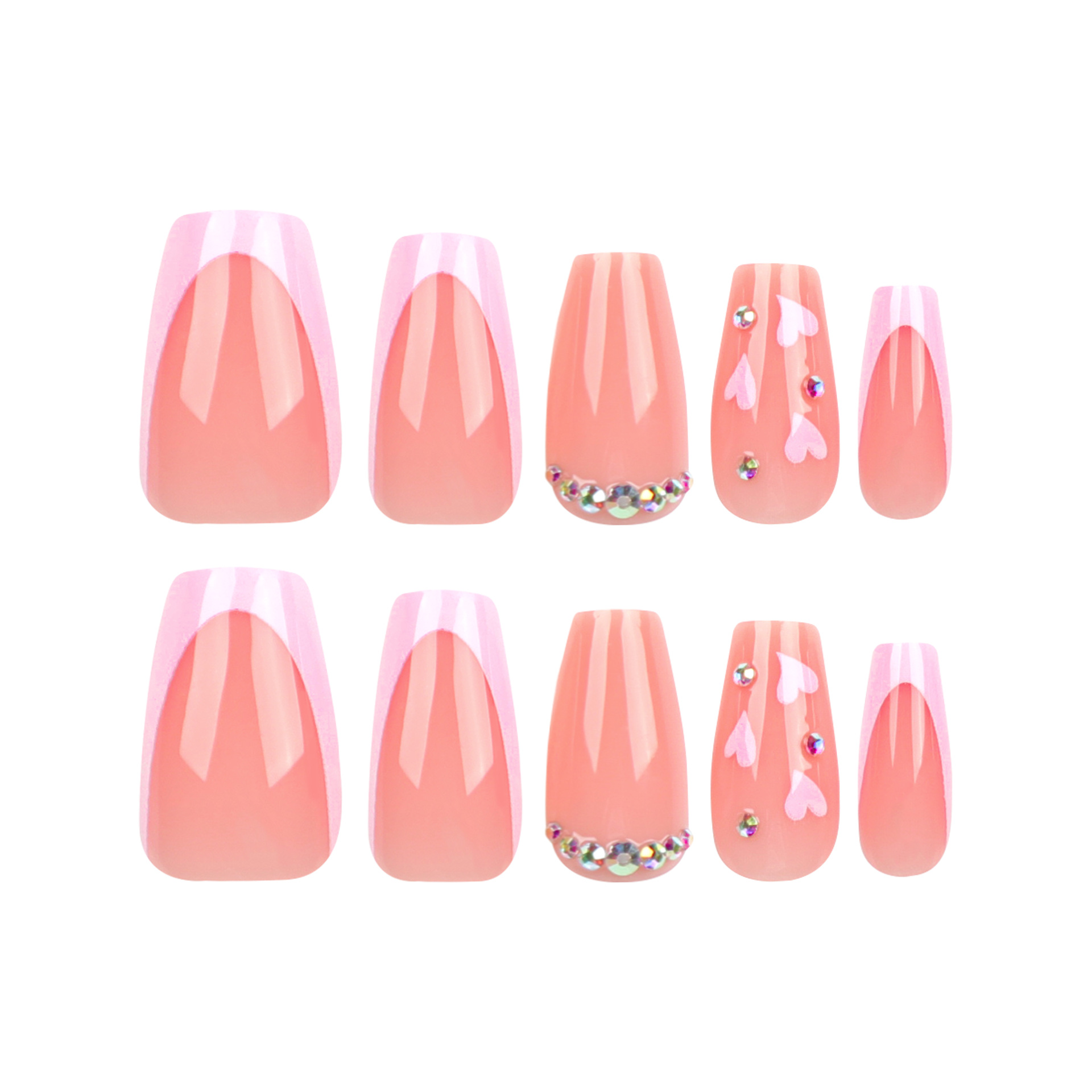 / 裸色纯色美甲穿戴式指甲贴简约爱心紫边美甲片指甲片穿戴甲甲片