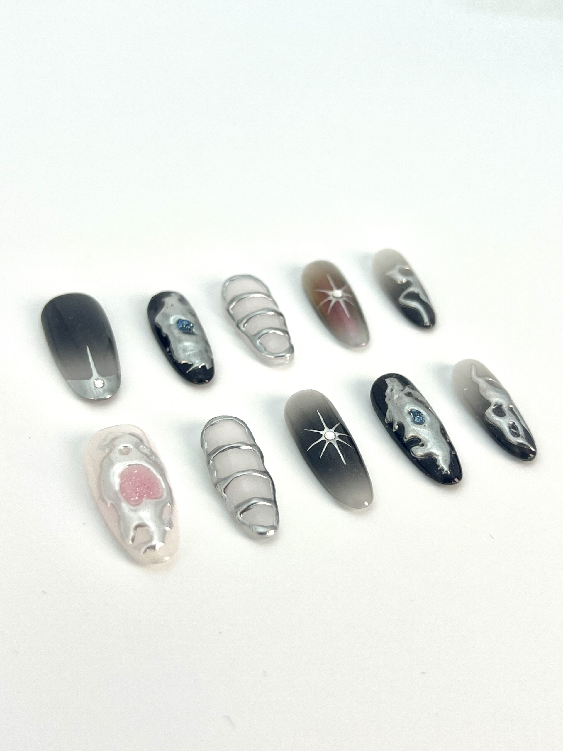 黑银灰主色调搭配闪亮装饰,华丽感十足的穿戴甲,精品店高端款品质有保障 수량