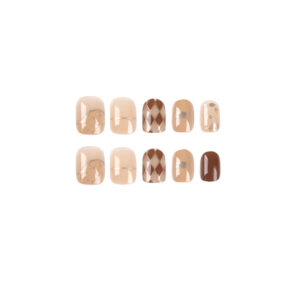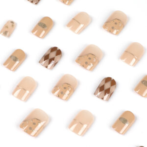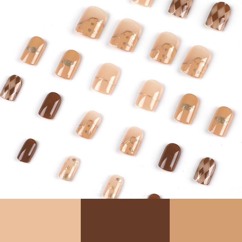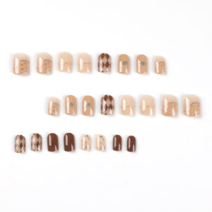 穿戴甲短款复古穿戴美甲成品批发棕色菱格美甲片美甲成品假指甲 수량