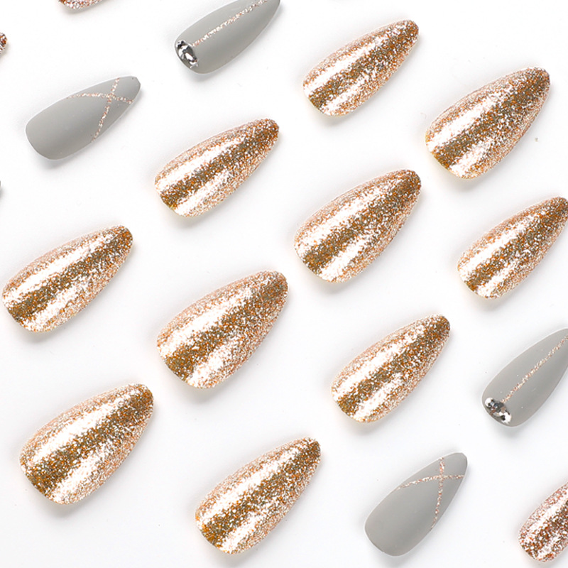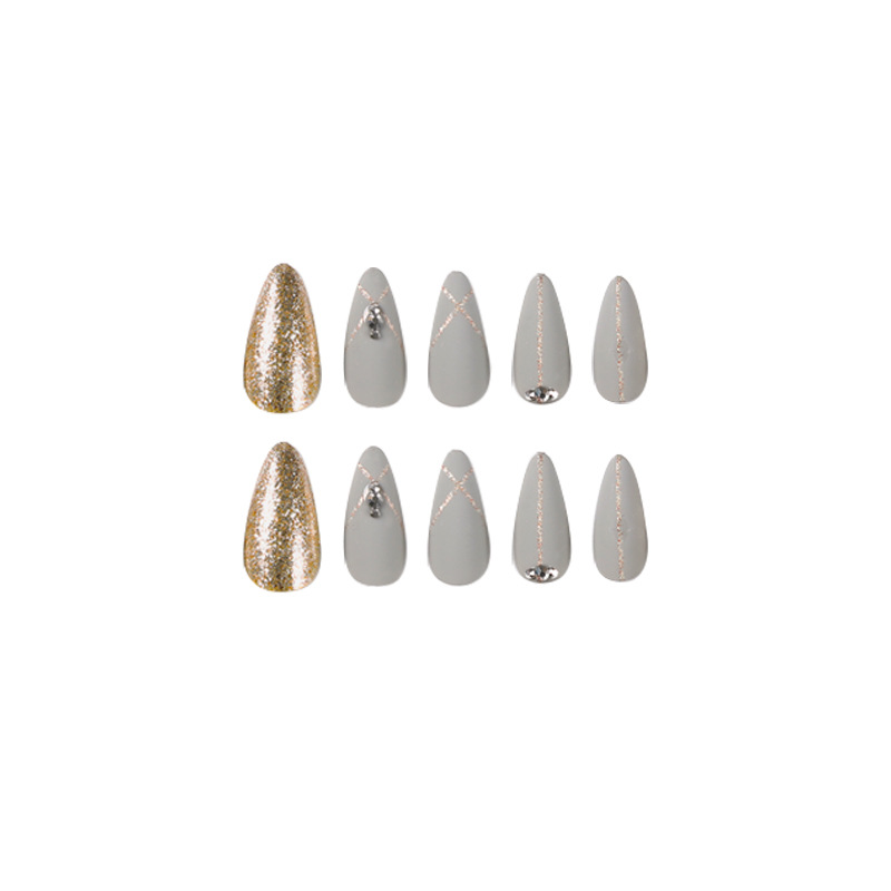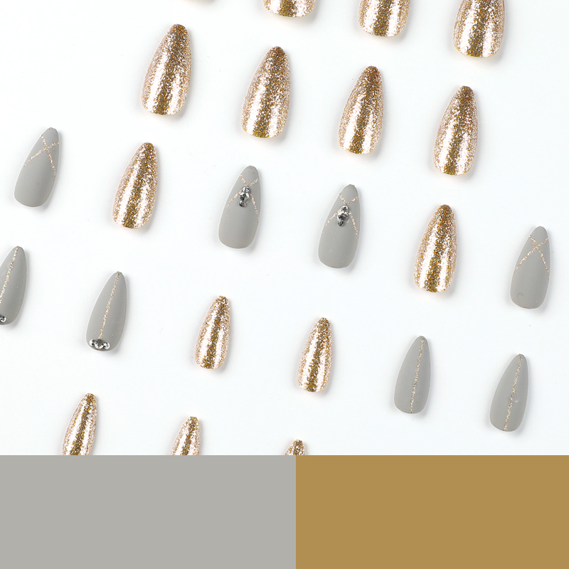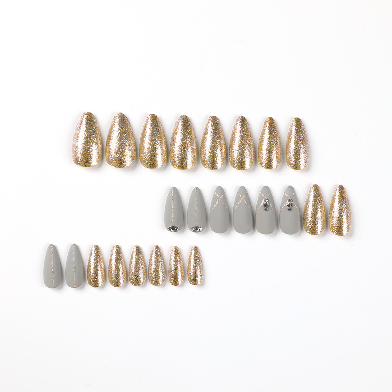 穿戴甲灰色磨砂金色闪粉水钻假指甲片批发甲片成品press on nails
