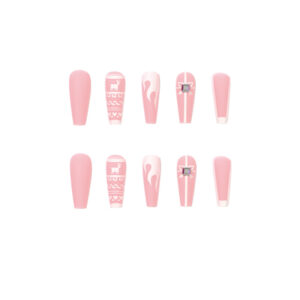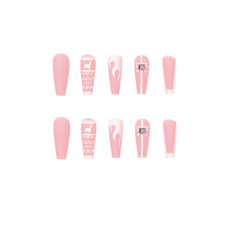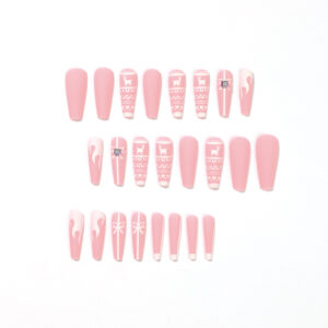 / 穿戴甲甲片麋鹿圣诞款假指甲粉白撞色水钻美甲片批发nails的甲片
