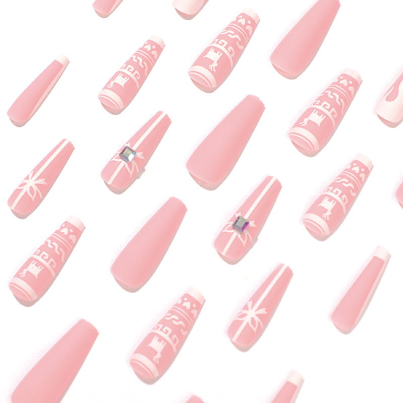 穿戴甲甲片麋鹿圣诞款假指甲粉白撞色水钻美甲片批发nails的甲片 수량