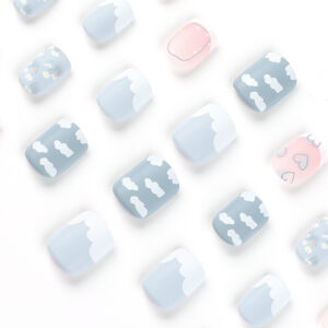 / 穿戴甲成品磨砂蓝色云朵指甲贴片批发爱心清新小花可拆卸美甲nail