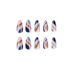 / 穿戴甲片批发波浪多色拼色穿戴甲中长款穿戴美甲成品批发假指甲