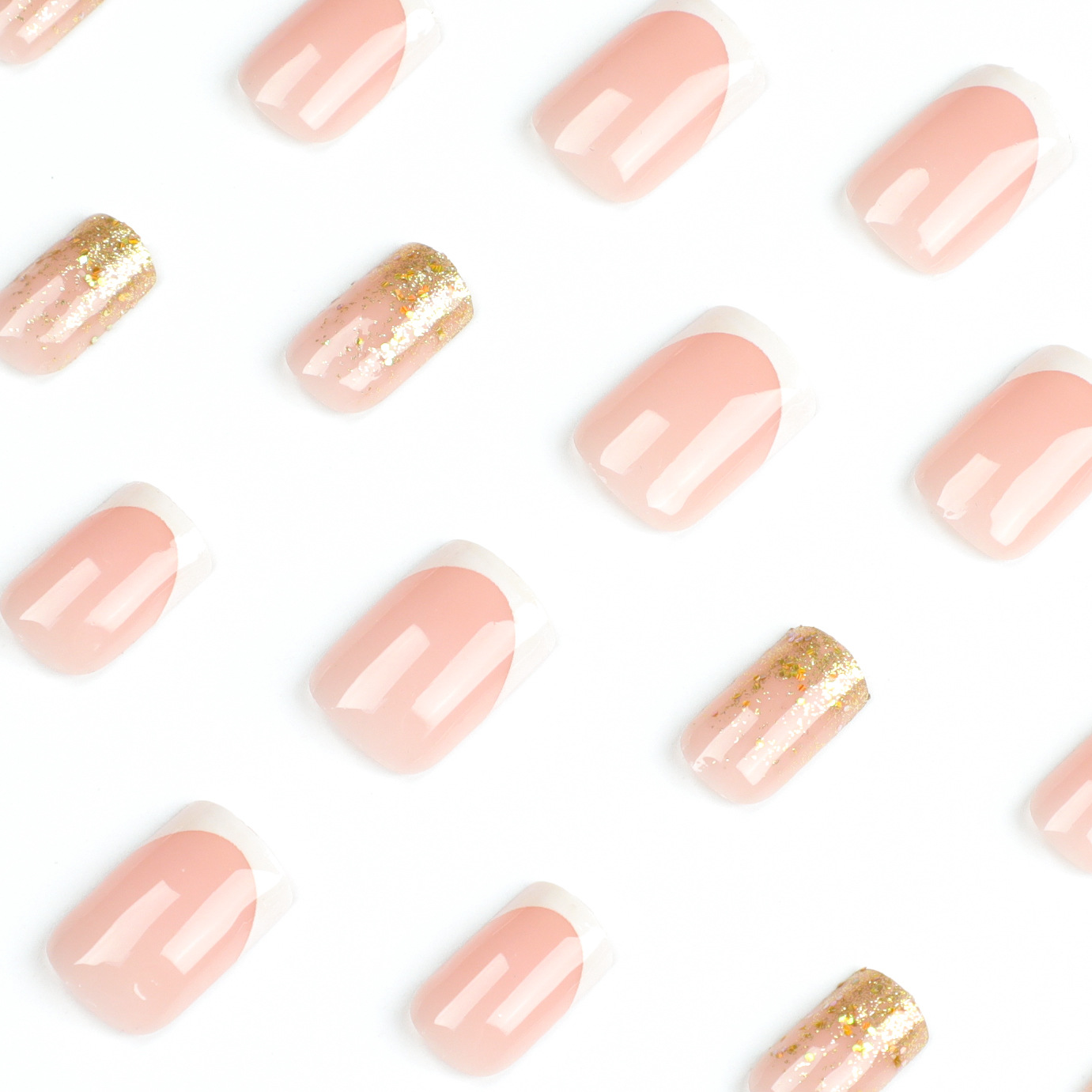 义乌美甲法式白边穿戴甲指甲片假指甲金色闪粉美甲片穿戴式甲片 수량