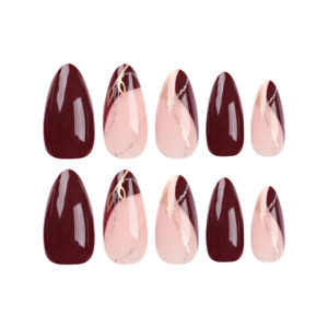 이우 매니큐어 네일 조각 버건디 단색 착용 네일 특수 네일 조각 글리터 라인 네일 스티커 가짜 네일 조각