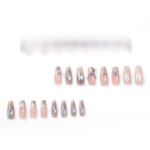 피치 핑크 프렌치 자두 드릴 드롭스 롱 발레 웨어러블 네일 아트 완성 가짜 손톱 네일 패치 네일 패치