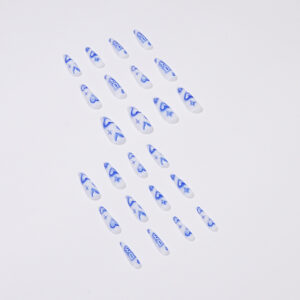 긴 발레 네일 조각 진주 화이트 가짜 손톱 블루 그라데이션 스팽글 반짝이 다이아몬드 착용 손톱 가을과 겨울 미백 네일 조각