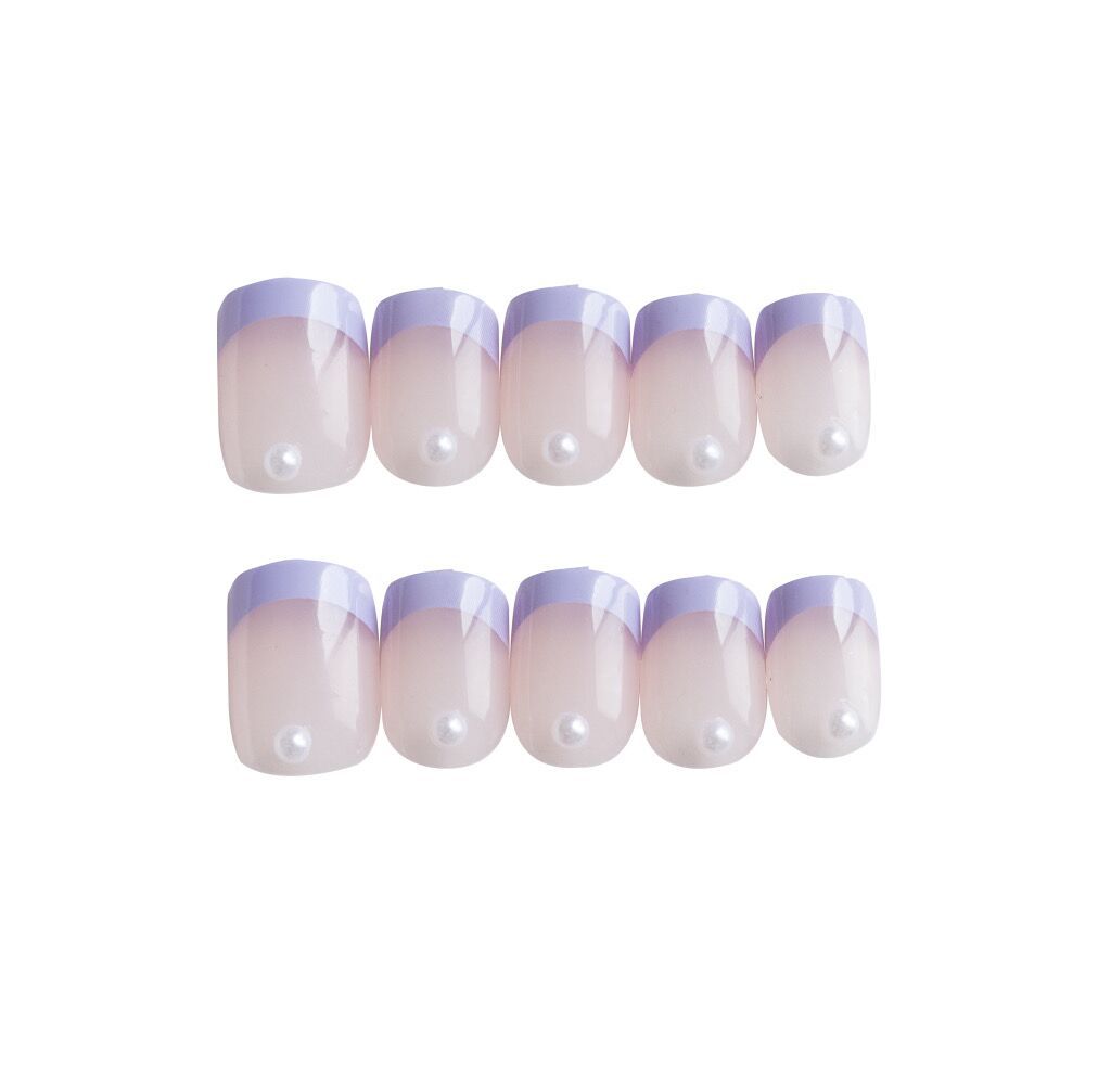 芋泥紫半法式珍珠穿戴甲成品假指甲美甲贴片指甲贴片防水地摊货源 수량