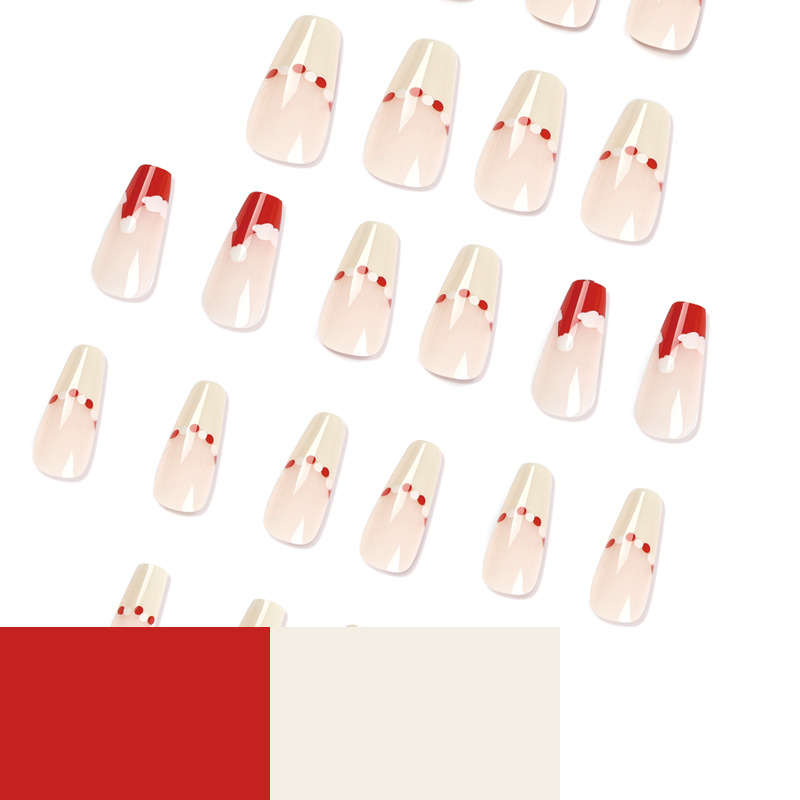 指甲贴片红白拼色法式圣诞帽美甲穿戴甲穿戴美甲成品批发假指甲