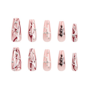 法式穿戴甲爱心闪钻爆闪美甲片可拆卸穿戴式甲片小红书美甲假指甲