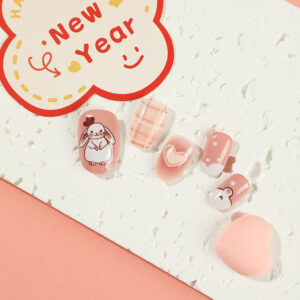 / 新年穿戴甲短款可爱卡通兔子美甲穿戴甲粉色腮红爱心ins风穿戴甲