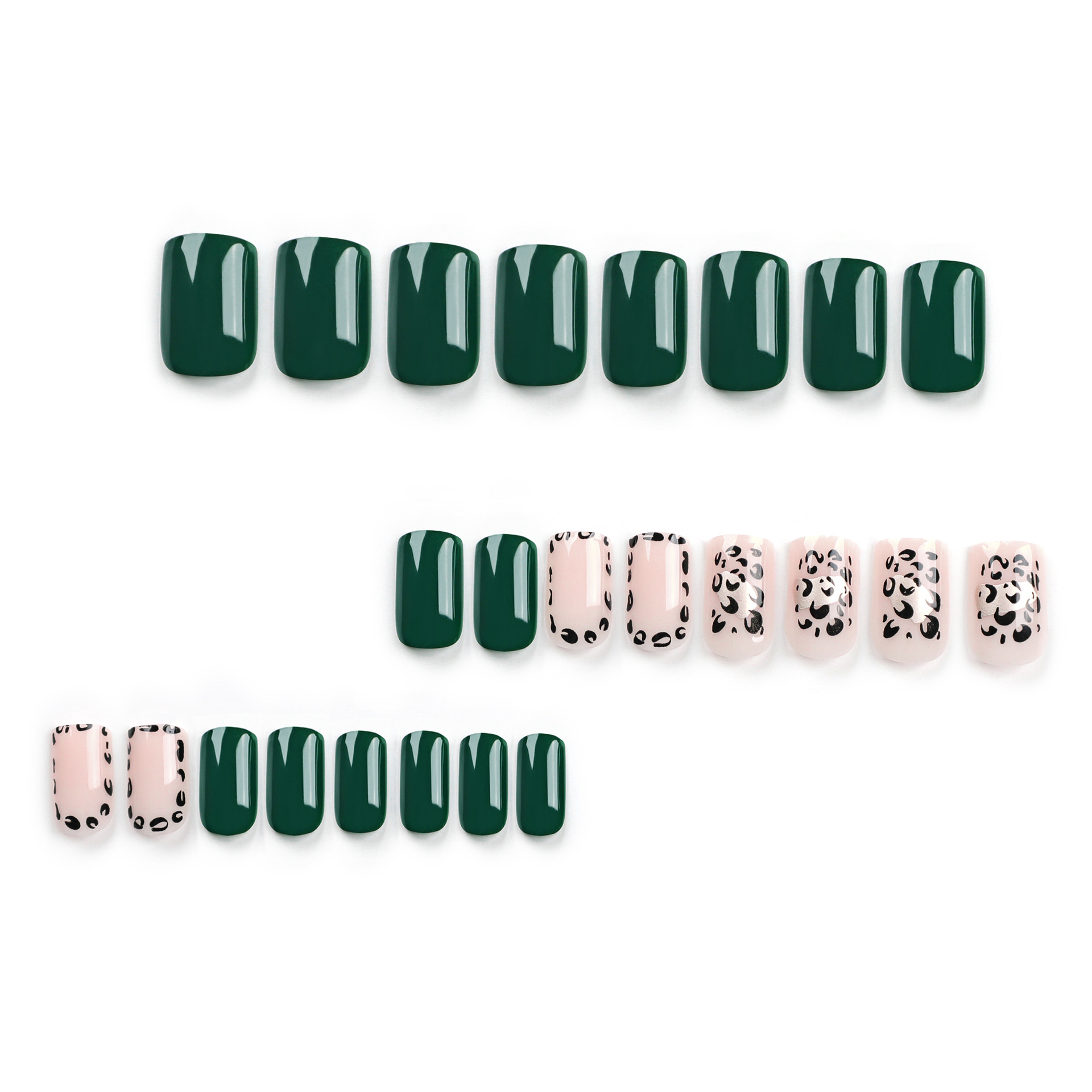 / 新款短款方形豹纹穿戴甲片绿色裸色美甲穿戴式甲片press on nai