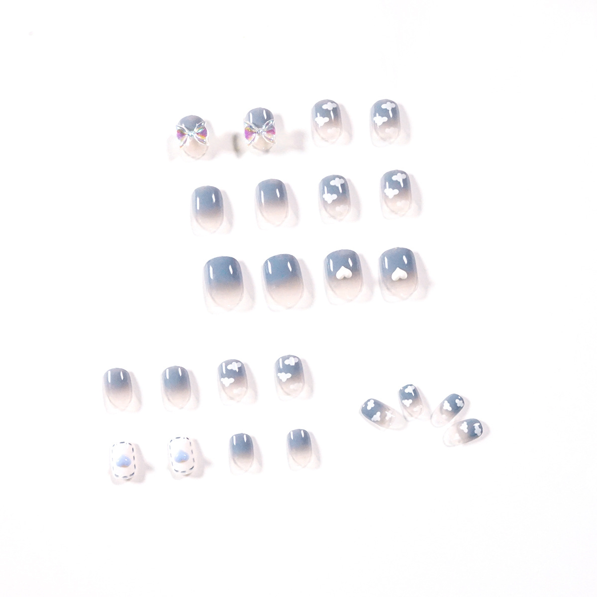 星空蓝白云可爱风穿戴美甲成品假指甲美甲贴片指甲贴片可拆卸甲片 数量