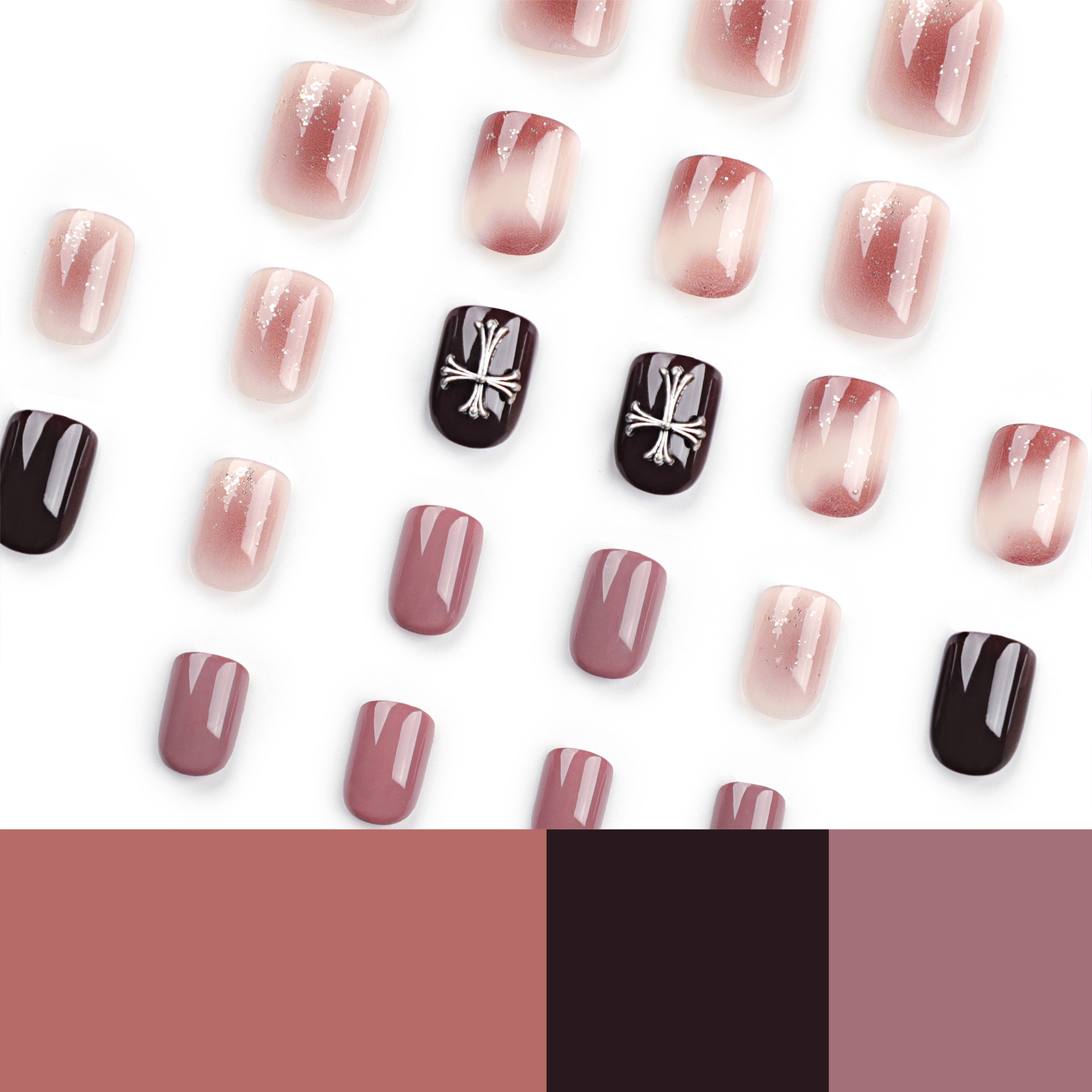 晕染闪粉穿戴甲克罗心十字架新款秋冬显白美甲甜美高级美拉德甲片