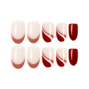穿戴甲白棕拼接斜法式穿戴假甲片指甲片批发假指甲press on nails