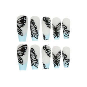 法式蓝黑蝴蝶长芭蕾穿戴甲指甲贴可拆卸甲片穿戴美甲指甲片nails 数量