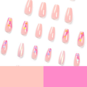 新款超长芭蕾型美甲片简约纯色皮粉色穿戴甲欧美穿戴式甲片批发