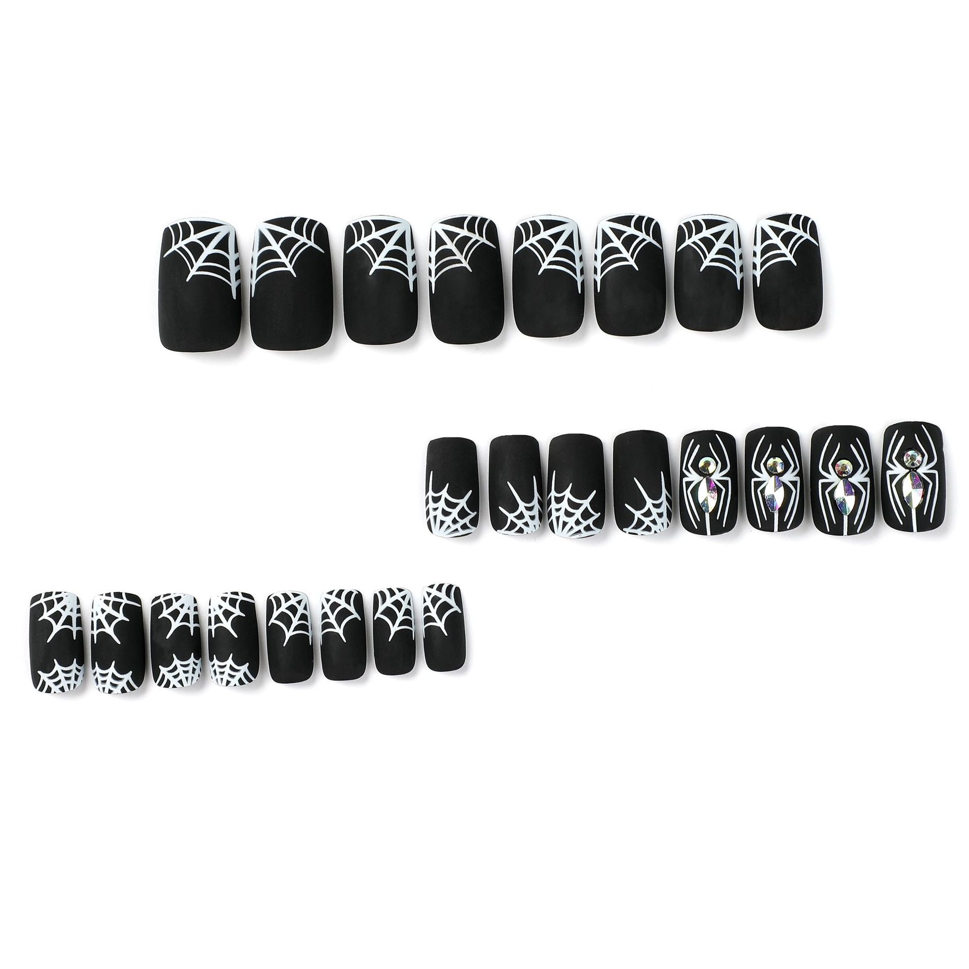 甲片穿戴甲万圣节美甲黑色磨砂白色蜘蛛蛛网水钻美甲片可拆卸nail甲片穿戴甲万圣节美甲黑色磨砂白色蜘蛛蛛网水钻美甲片可拆卸nail