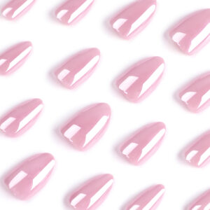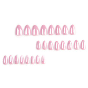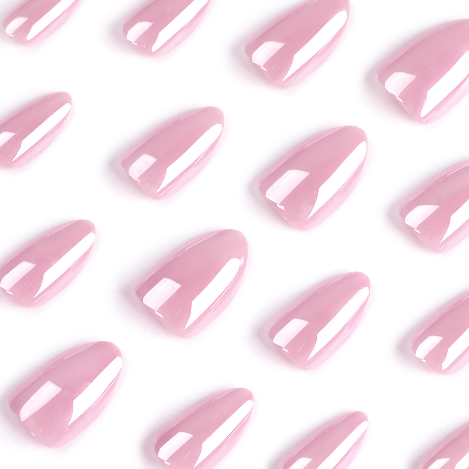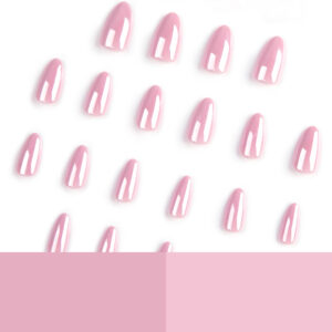 新款超长芭蕾型美甲片简约纯色皮粉色穿戴甲欧美穿戴式甲片批发