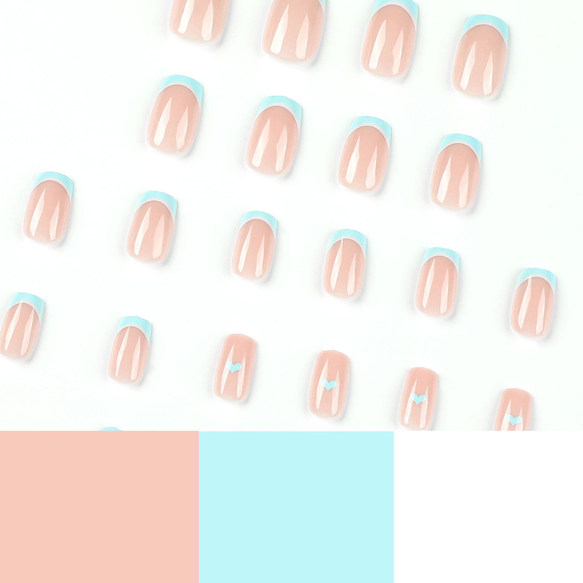 / 穿戴甲批发蓝白拼接法式美甲片蓝色爱心假指甲贴片穿戴式指甲贴