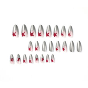 / 穿戴甲片法式金属银边红色星星穿戴甲 欧美指甲贴片批发美甲贴片