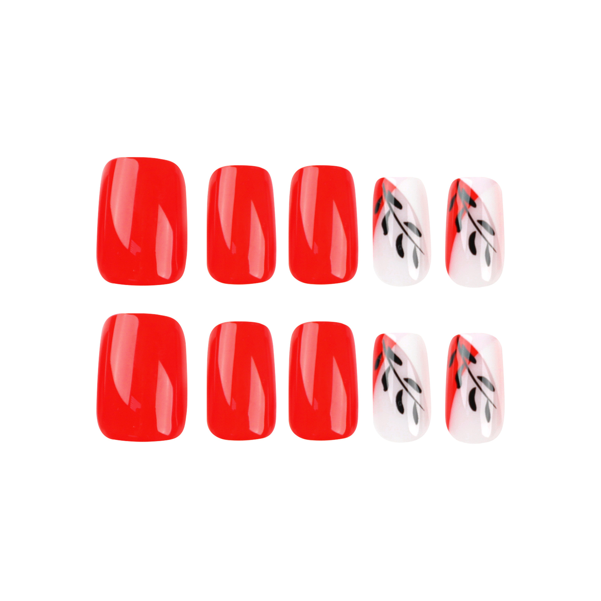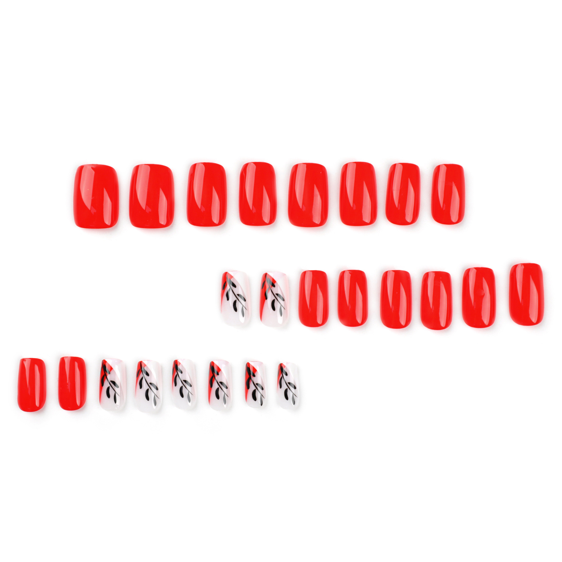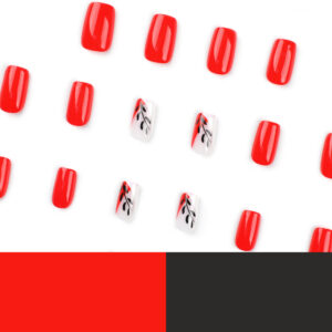 穿戴甲片短款红色甲片黑色树叶假指甲可拆卸成品press on nails 数量