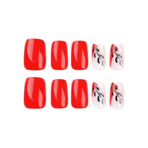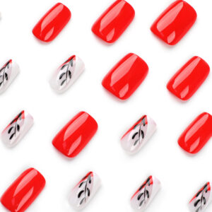 / 穿戴甲片短款红色甲片黑色树叶假指甲可拆卸成品press on nails