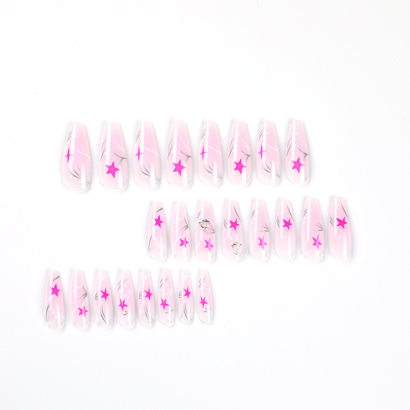穿戴甲片粉色晕染星星西太后银色线条美甲片成品可拆卸高级假指甲 数量