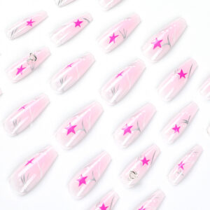 / 穿戴甲片粉色晕染星星西太后银色线条美甲片成品可拆卸高级假指甲