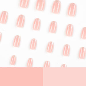 新款超长芭蕾型美甲片简约纯色皮粉色穿戴甲欧美穿戴式甲片批发