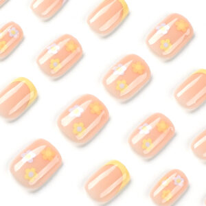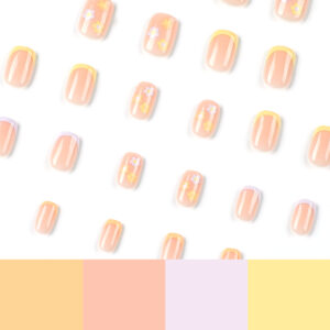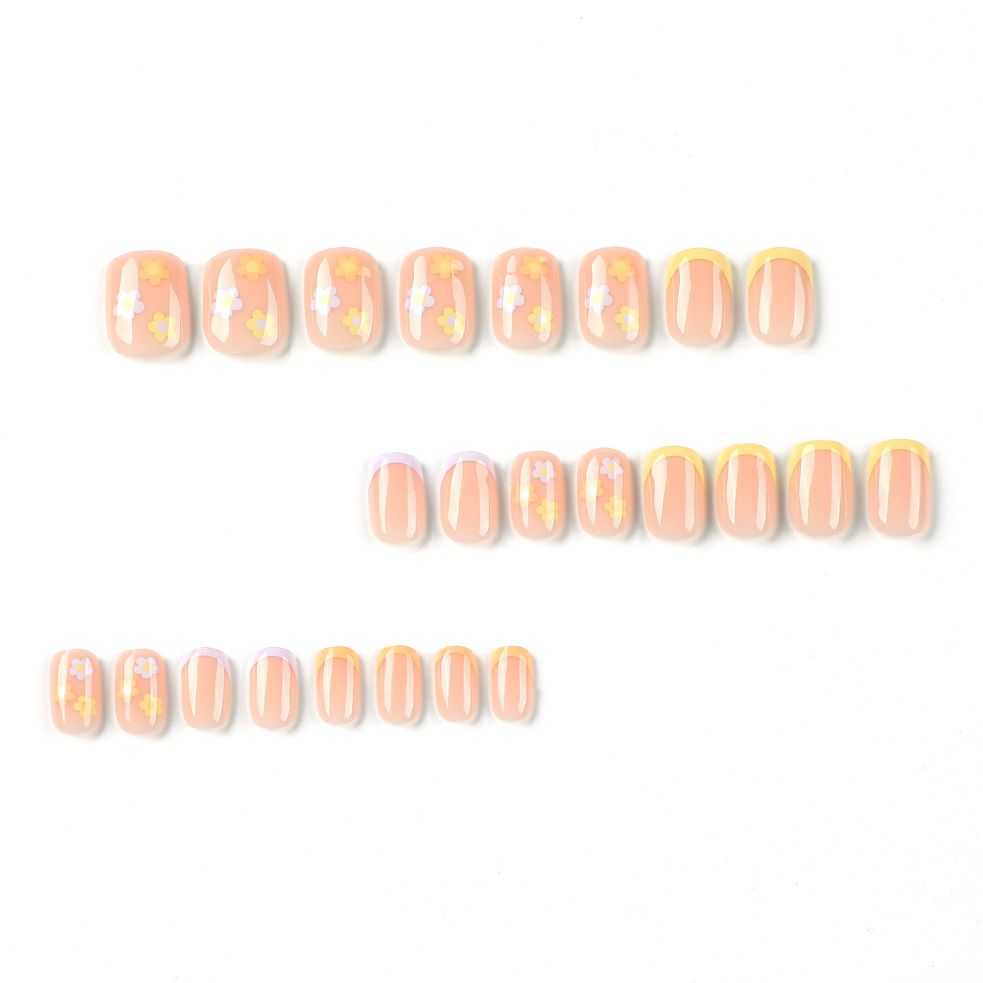 穿戴甲短款甲片橙黄紫三色法式搭配三色花朵指甲贴可拆卸甲片nail 数量