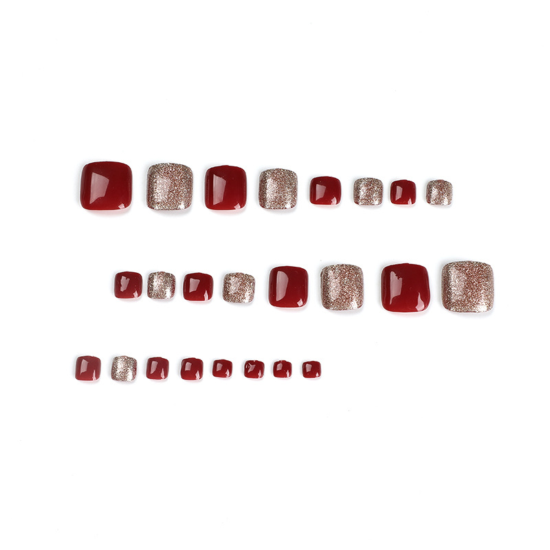 穿戴甲短款红色脚指甲贴片金色闪粉ins风穿戴甲美脚指甲片美甲片 数量