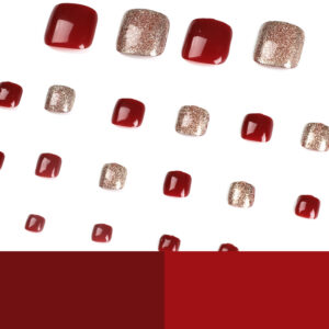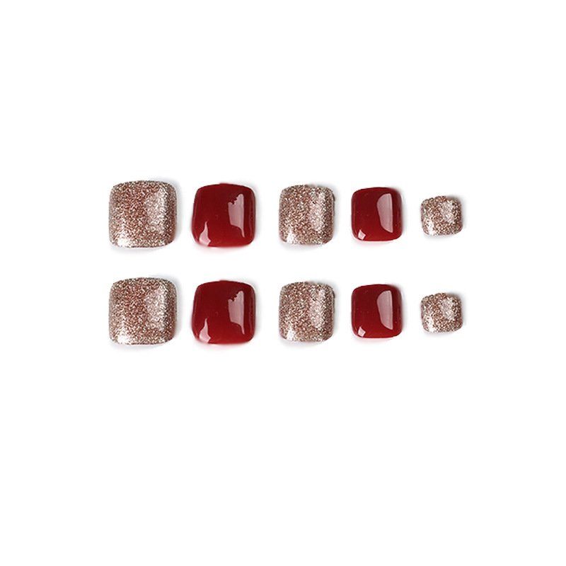 / 穿戴甲短款红色脚指甲贴片金色闪粉ins风穿戴甲美脚指甲片美甲片