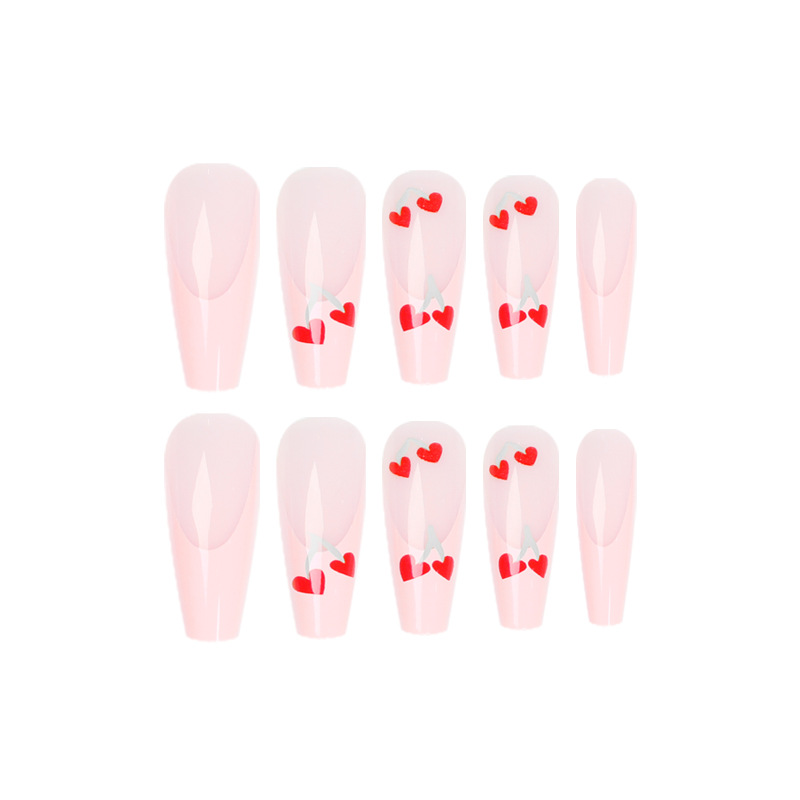 / 穿戴甲粉色长芭蕾爱心樱桃美甲穿戴甲甲片批发长款穿戴甲甲片成品